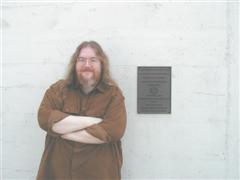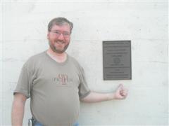 Chris and I look at each other in surprise and both say "Sure!" We jump back in the Element and tell Steph "We're going in!" The gate opens and we drive in. Right on the side of the building is the plaque, just as the voice said it would be.